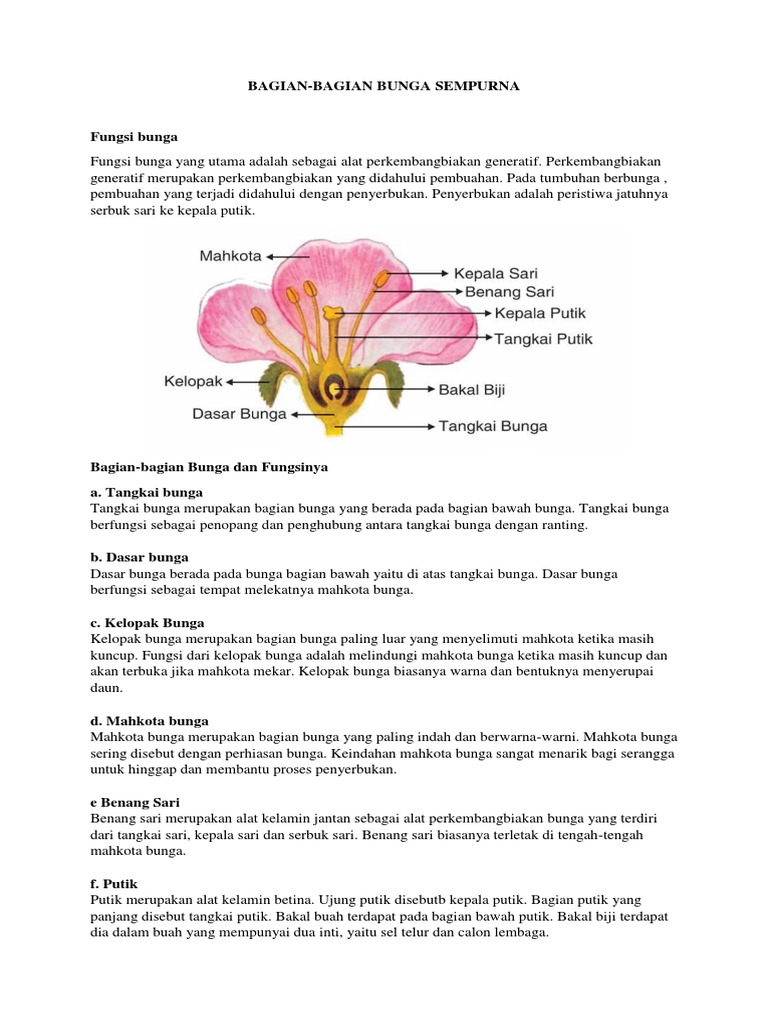 Artikel Bagian Bunga Dan Fungsinya from imgv2-2-f.scribdassets.com Dan fungsi bunga yang adalah sebagai perhiasan. Fungsi batang (tangkai) bunga mawar. Bunga menjadi bagian dari tumbuhan. Bunga memiliki dua alat perkembangbiakan yakni putik dan benang sari. Bunga merupakan alat perkembangbiakan generatif tumbuhan. Hal ini dapat kita dasari dengan banyaknya bunga yang memiliki warna dan. Bunga memiliki fungsi yang sangat penting, karena di bagian bunga proses penyerbukan dan namun selain sebagai alat reproduksi, bunga juga memiliki fungsi lain, yaitu sebagai organ untuk. Selain itu, mahkota bunga juga memiliki fungsi penting lainnya.